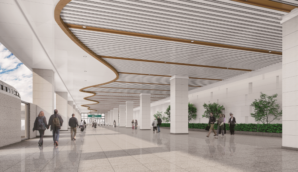 富阳西站为中型站房,包含主站房、客运系统机房以及车站办公等用房。工程总建筑面积38797.6平方米,其中架空层18809.27平方米,站房19988.33平方米,最高聚集人数可达800人。