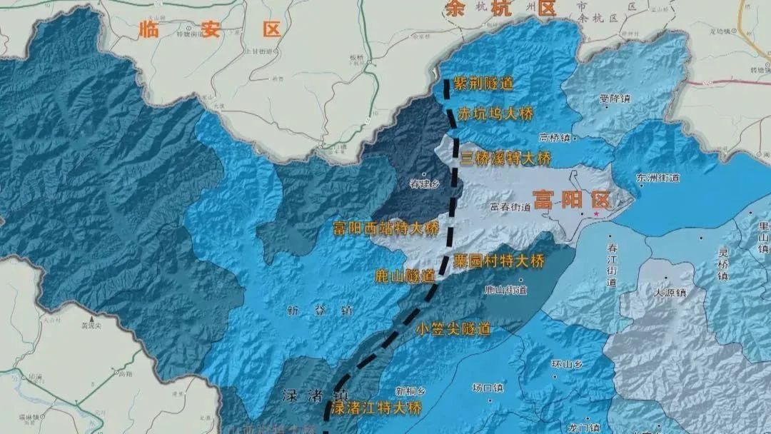 2021年5月21日全线最长隧道鹿山隧道贯通,富阳段提前40天率先实现全线隧道贯通,目前,富阳段路基、桥梁桩基、架梁等全部完成,正在进行无砟轨道铺设施工;