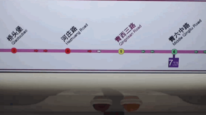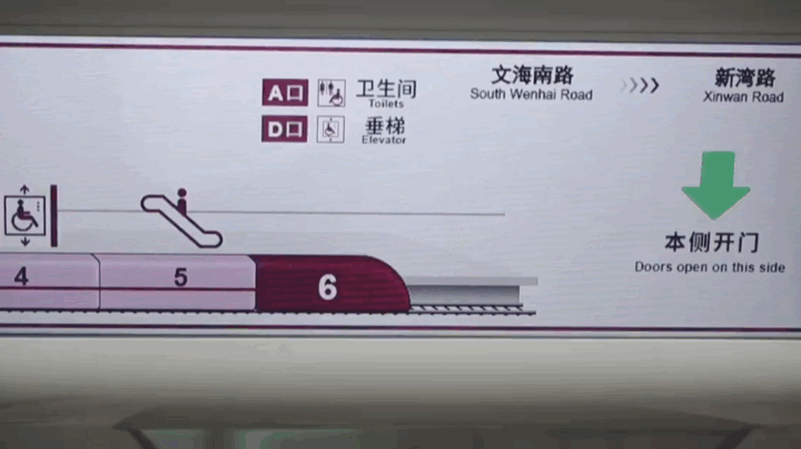 此外,在抵达站点前,乘客所处的车厢会进行深浅色反复闪烁,可视化地标明当前所处车厢。乘客可据此快速判断自己所处的车厢位置。