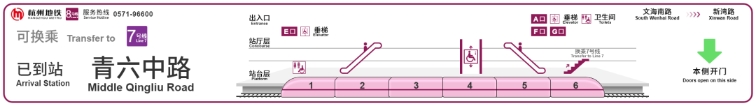 还是以8号线青六中路站为例。根据地图信息,想要快速换乘7号线的乘客,可直接在6车厢旁的换乘通道进入7号线站台,无需乘坐电扶梯前往站厅再进行换乘。其余车厢的乘客可在下车前,通过自身所在车厢位置,判断下车后换乘方向,换乘一步到位。