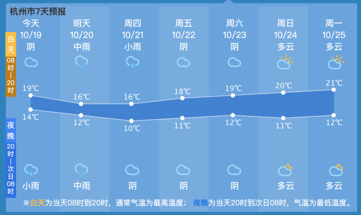 真是没想到,10月上旬,杭州还热得频频破纪录,明后天又会冷得超前。中国天气公布的气象数据显示,10月20日-22日,杭州最高气温最低值相当于常年11月中旬,广州福州更是会冷得像12月下旬。