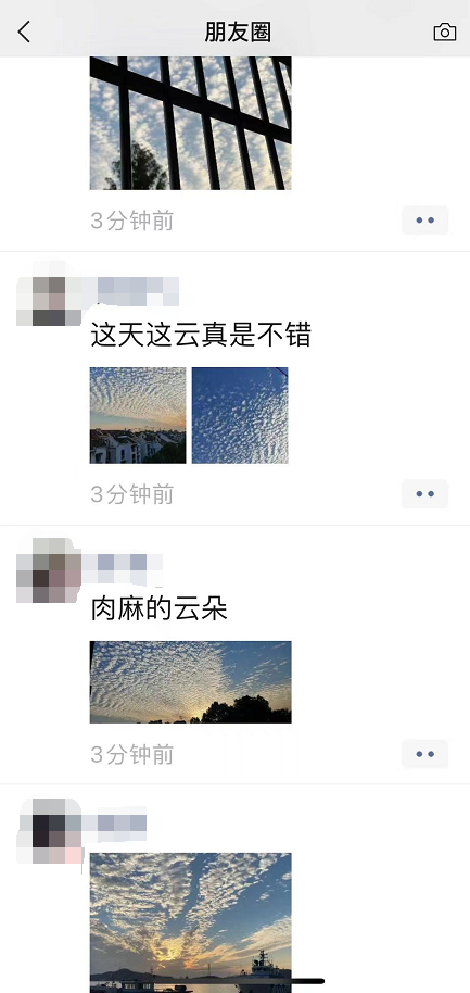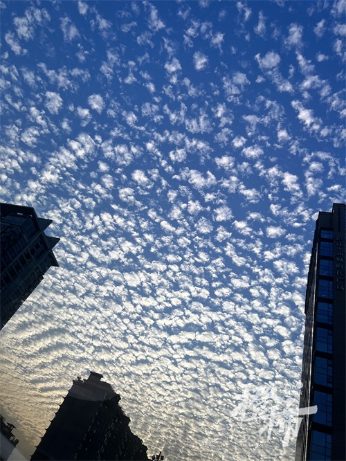 都市快报讯 刚刚,你的朋友圈是不是被漂亮的白云刷屏了?照片中,一朵朵排列密密的小白云,看起来就像鱼鳞一般,有人叫鱼鳞云,当然也有人觉得像瓦片,叫瓦片云。