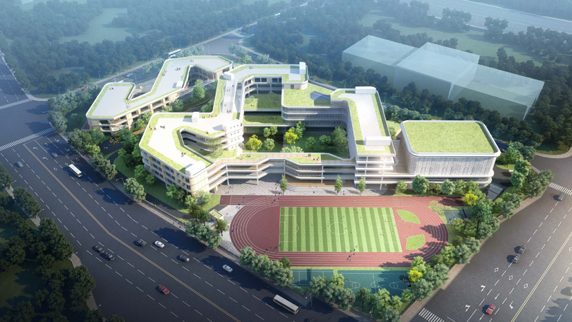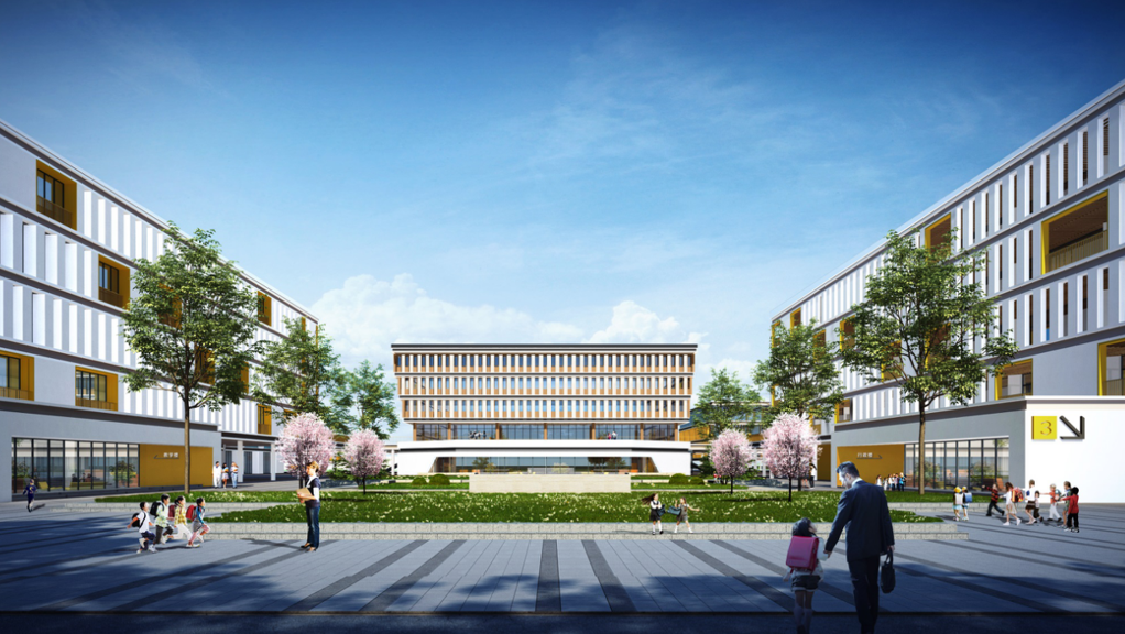 学校用地面积5.6万平方米,总建筑面积为9.4万平方米,其中地上建筑面积为5.6万平方米,地下建筑面积为3.8万平方米,规模48个班。目前项目已开工。