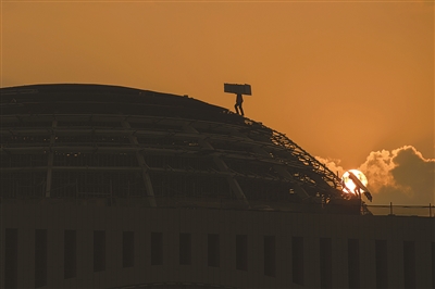 2021年5月24日,西湖大学云谷校区行政楼顶,工人正在夕阳余晖下搬运物料。昨天的活动现场还特地滚动播放了2382位云谷校区建设者的名单,感谢他们为西湖大学梦想和未来奠基的辛勤付出。