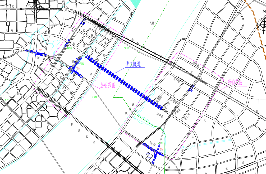 南起博奥路与平澜路交叉口,下穿钱塘江,北至新业路 61号(预编)。长2772米,宽9米。