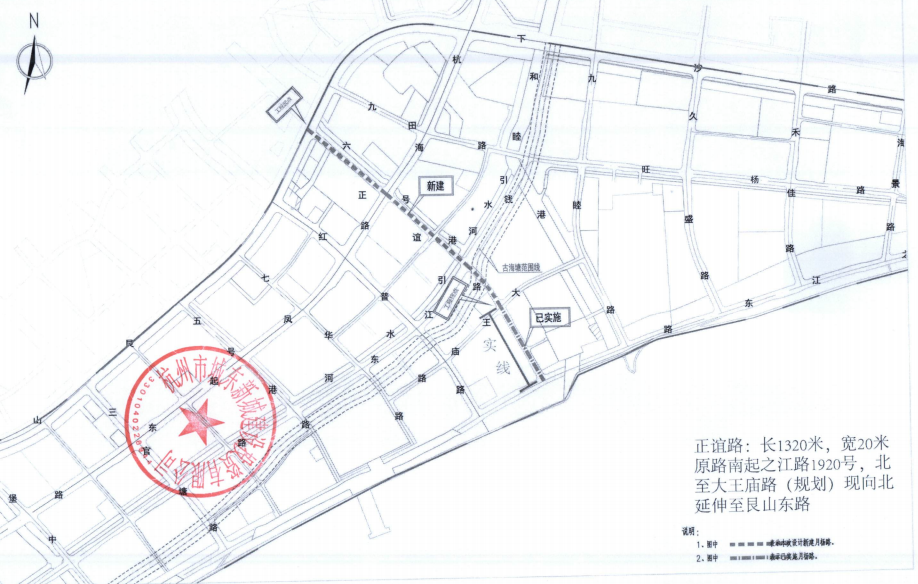 原路南起之江东路1920号,北至大王庙路(规划名),现向北延伸至艮山东路77号(预编)。全路长1320米,均宽22米。