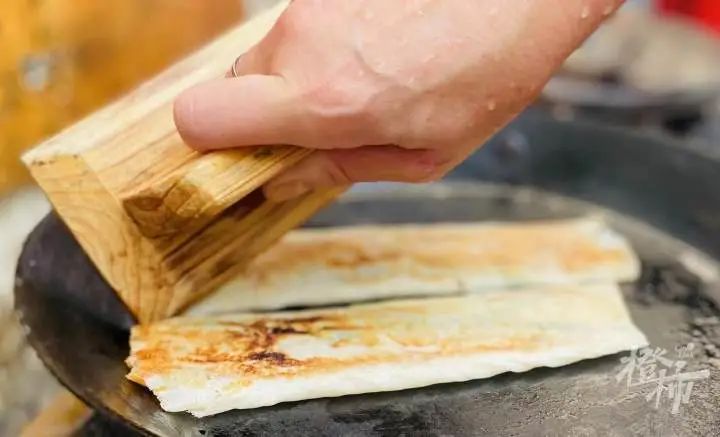 哎,吃完一副你就秒懂了——面皮的焦香+葱香,油条被压得又薄又脆,再加上甜面酱+辣酱的复合味道,怪不得有让人念念不忘的本钱。