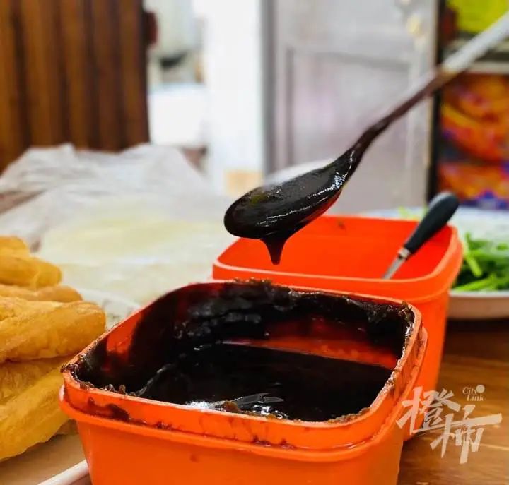 最后就是灵魂:酱。她家的甜面酱,就是老板娘劳剑慧买回来后,自己重新再熬制过的,口感更加香甜。