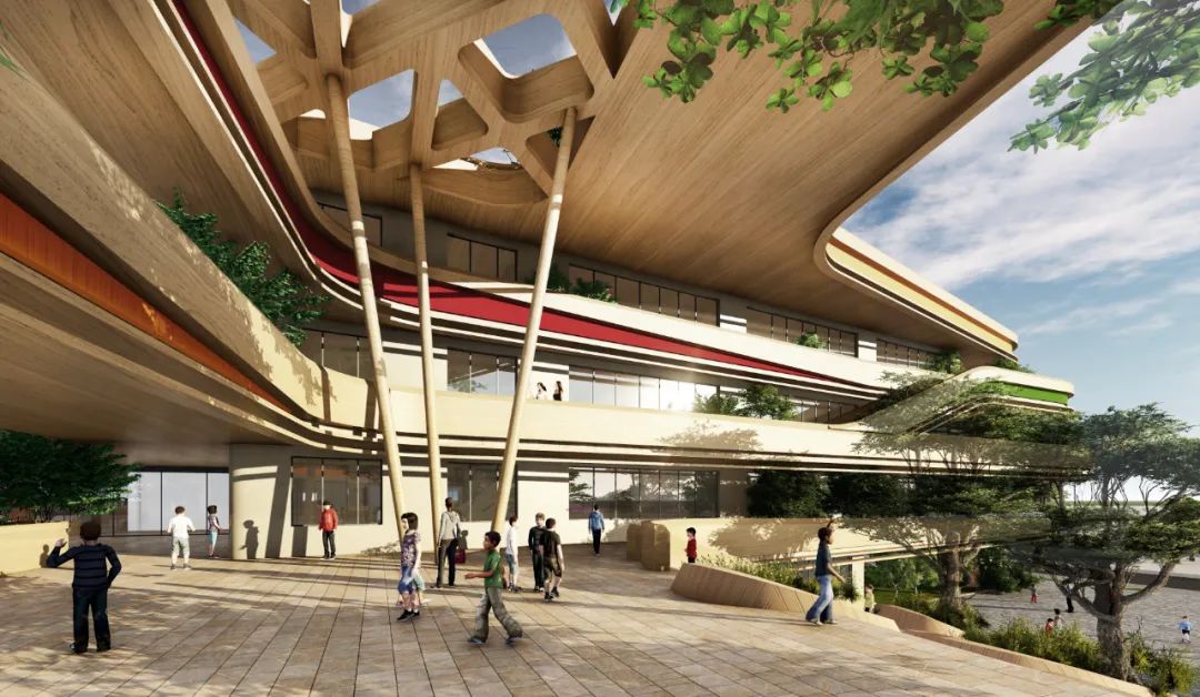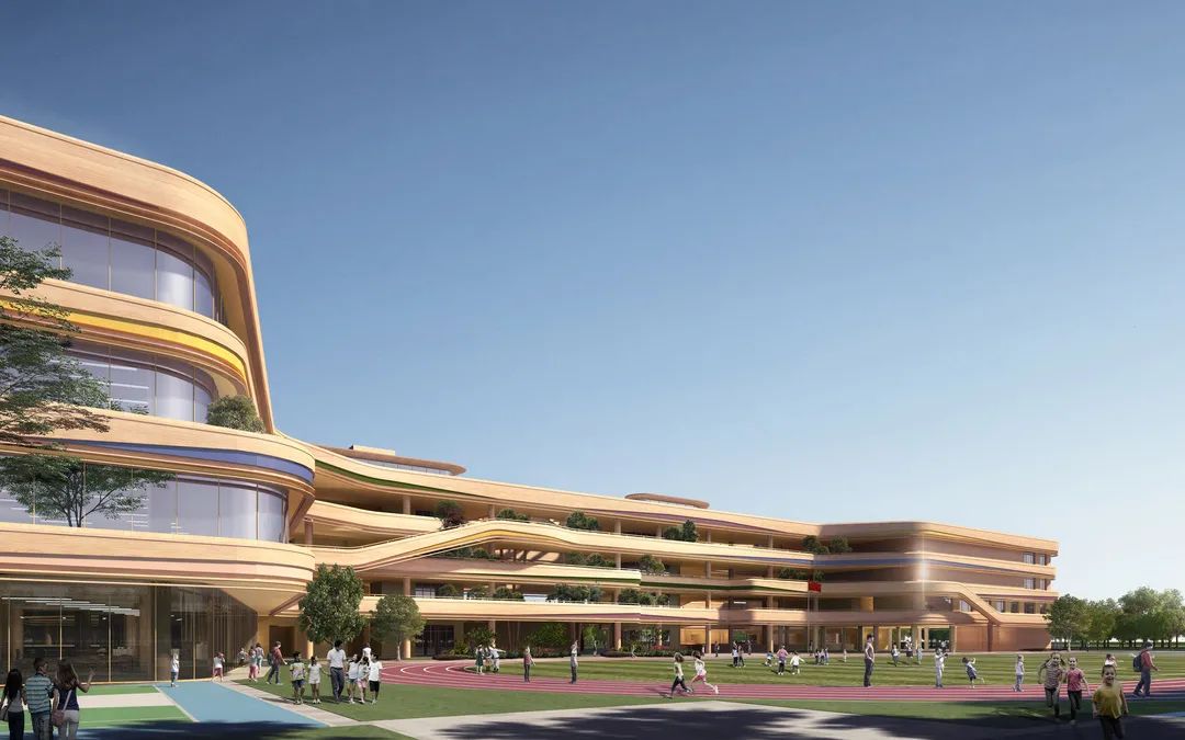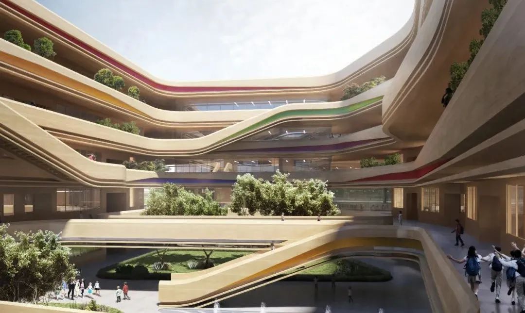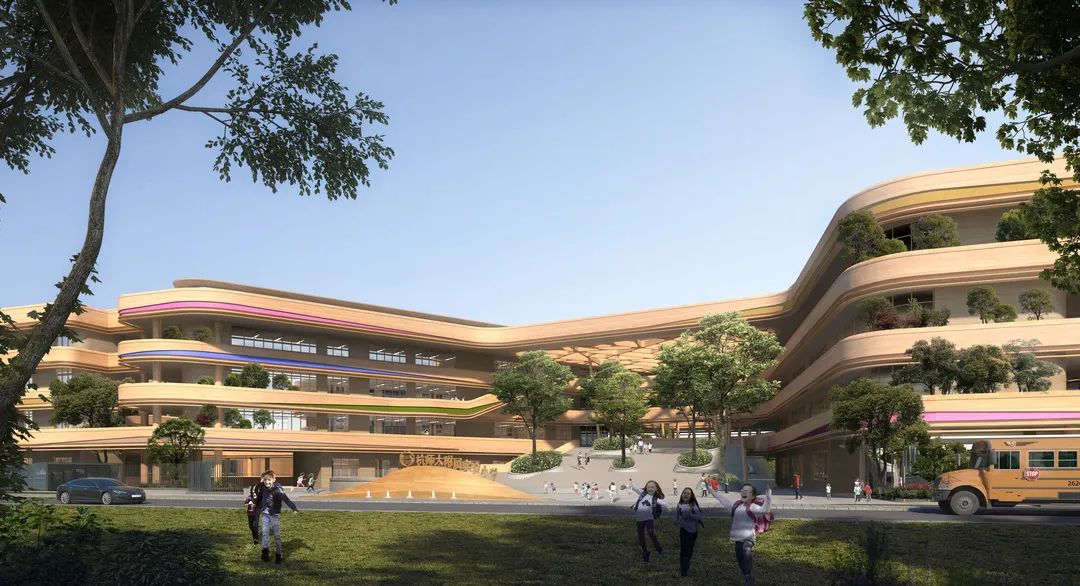 项目注入“绿色校园” “共享校园”和“生态校园”三大概念,将学校营造成一座“森林谷”。以“自成天地”与”公共性最大化“为原则,融合“立体森林”理念,形成以教学用房围绕公共空间的布置模式,实现教育资源的最高效共享,形成 “学园”围绕“乐园”的校园活动空间。