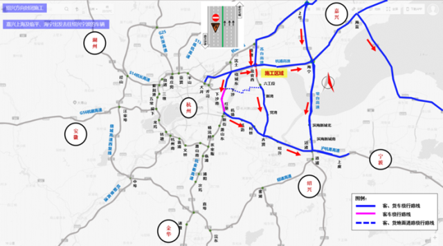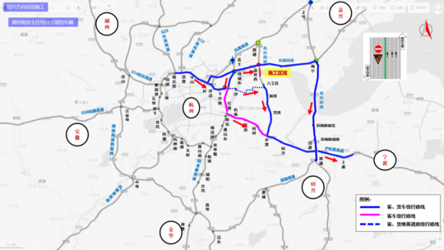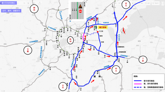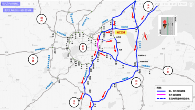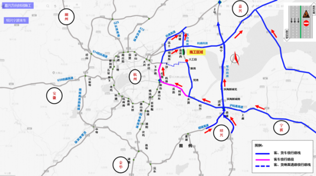 (3)客车还可由大井枢纽—绕城北线—绕城东线—红垦枢纽—杭甬高速—绍兴、宁波;