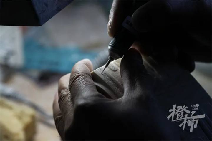 “比如,我制作神人兽面,刻一条条纹路,费时最少8小时,中途甚至不休息,争取一气呵成。我用的,可是现代的电动牙雕机。”
