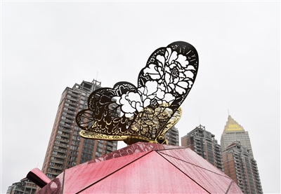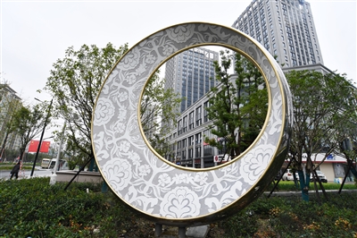 金城路上造型各异的城市雕塑 记者 范方斌 摄