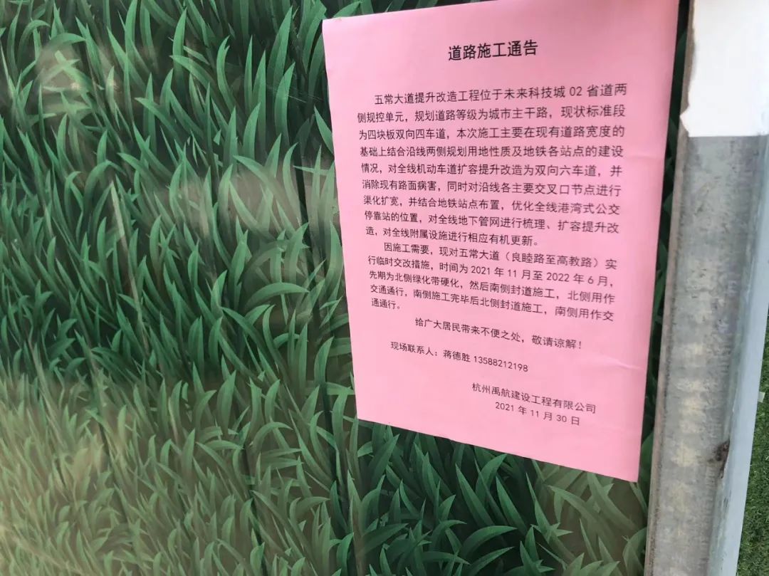 天天看余杭消息:近日路过五常大道,有网友发现,往常,车来车往的城市主干道,正在进行部分路段的封闭施工。