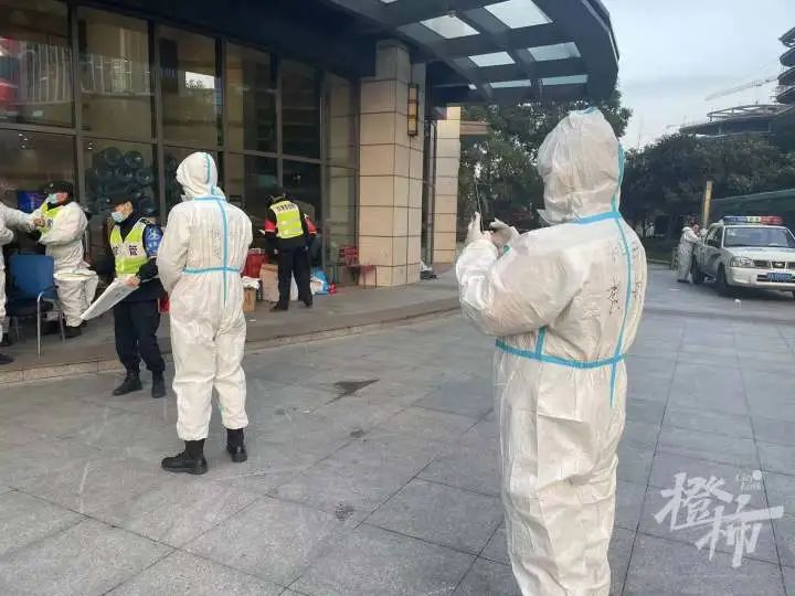 今天上午9点开始,其余滞留人员将按照楼层分批有序下楼,由20余辆大巴车点对点送到前期已登记明确的居家观察的地址。