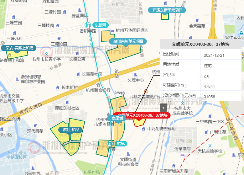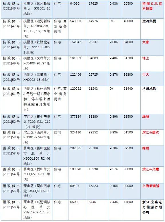 此后,绿城又摇中萧政储出[2021]53号市北单元地块,继10月拿下市北地块后,再次补仓。同时,联合浙江交投,拿下余政储出[2021]26号未来科技城地块。
