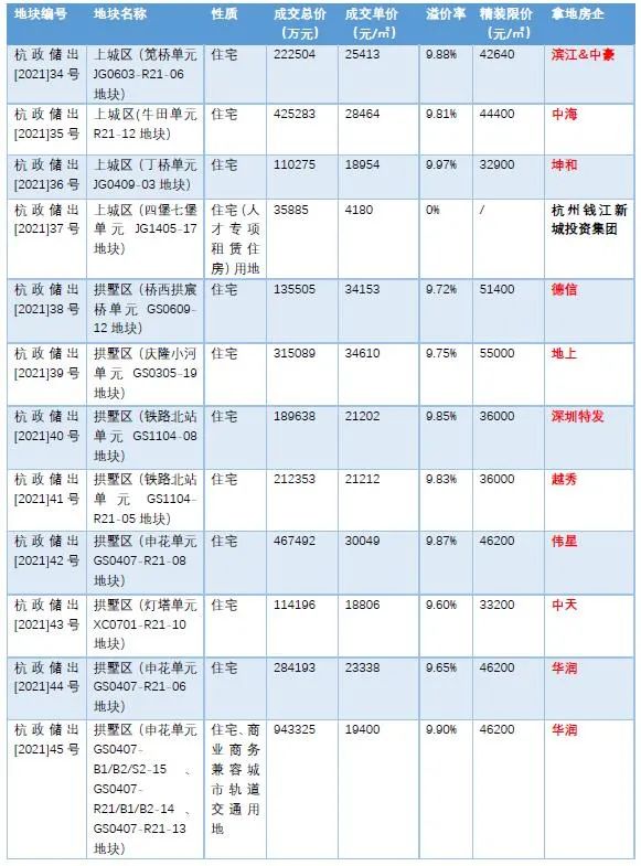 此外,今天还有不少拿到宅地的幸运儿。中天分别落子西湖三墩和拱墅灯塔,中海、坤和、越秀、招商、大家、圣奥、广宇等也各有斩获,顺利补仓。