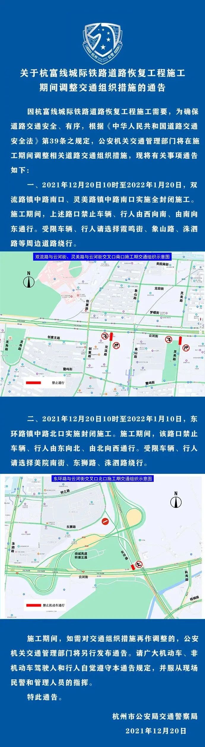近日,杭州数条道路部分路段实施封闭施工,交通组织措施有调整,一起来看看!