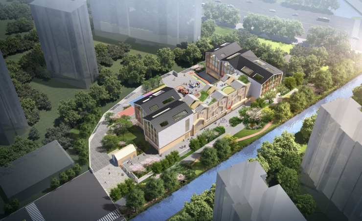 项目概况:冯金幼儿园项目位于乔司街道三角村,项目总建筑面积约0.75万平方米,建成后办教学规模为12班。项目设计灵感来源于神奇的糖果屋,通过五个盒子的造型布置,校园各个功能区间被划分得合理有序,对应幼儿园五大教育理念:健康、科学、社会、语言和艺术。此外,建筑屋顶还设置了绿化屋面及游乐空间 ,增强幼儿园整体的趣味性。