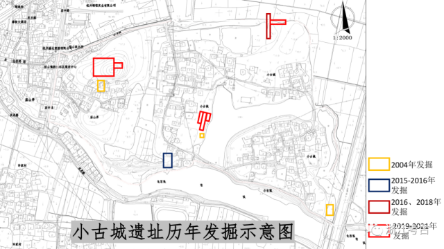 小古城遗址历年发掘示意图