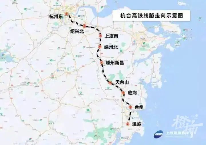 杭台高铁连接浙江省杭州、绍兴、台州三市,杭州至绍兴段与既有杭深高铁杭甬段共线,新建绍兴至台州段线路,全线设绍兴北、上虞南、嵊州北、嵊州新昌、天台山、临海、台州、温岭8个车站,设计时速350公里,绍兴北至温岭间经由杭台高铁较经由杭深高铁运行里程近64公里。