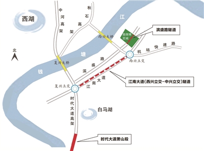 在杭州南部,快速路“骨架”也将进一步拉大。萧山区的时代大道萧山段和江南大道隧道都已基本竣工,即将通车。