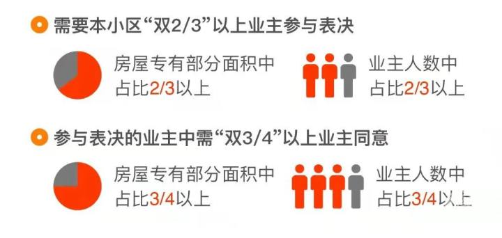 规范项目表决流程。重点明确了商品房性质的老旧小区住宅加装电梯项目,需要占用小区范围内业主共有道路、绿地等公共场所的,应当经本小区专有部分面积占比三分之二以上的业主且人数占比三分之二以上的业主参与,并经参与表决专有部分面积四分之三以上的业主且参与表决人数四分之三以上的业主同意后,方可申请项目实施。