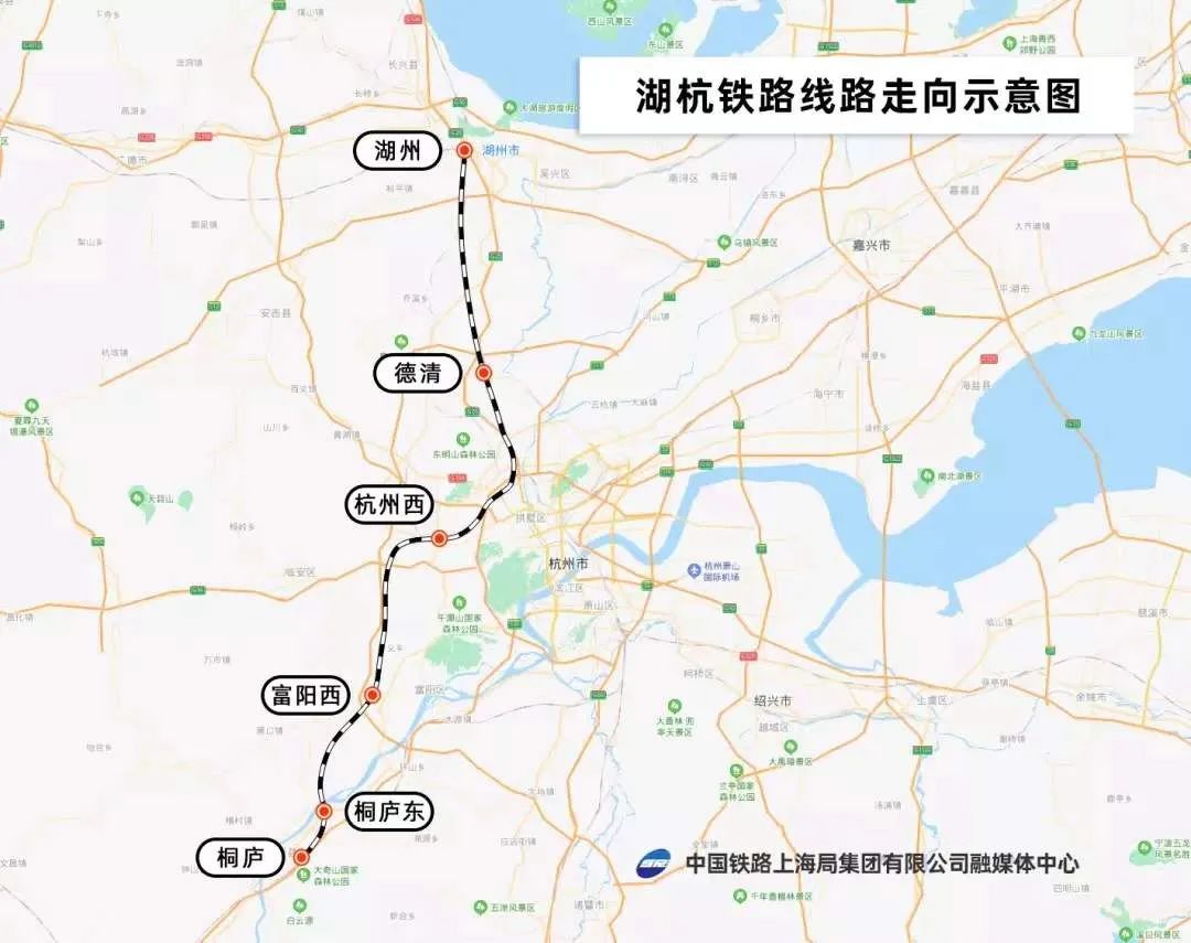 湖杭高铁是合杭温铁路的组成部分,北接宁杭高铁、沪苏湖高铁,南连杭黄、杭温铁路,自湖州站起,经吴兴区、德清县、余杭区、西湖区和富阳区,在桐庐接入杭黄高铁。
