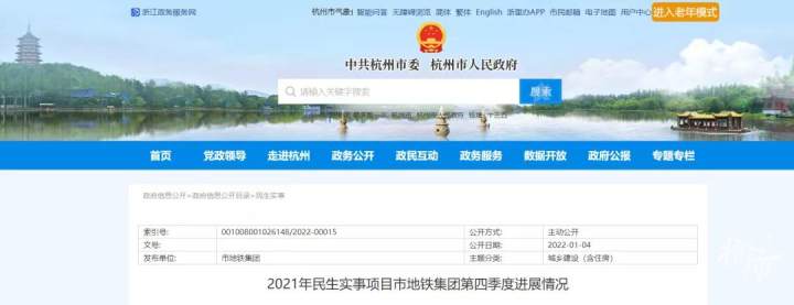 据杭州市政府网1月4日发布的《2021年民生实事项目市地铁集团第四季度进展情况》,