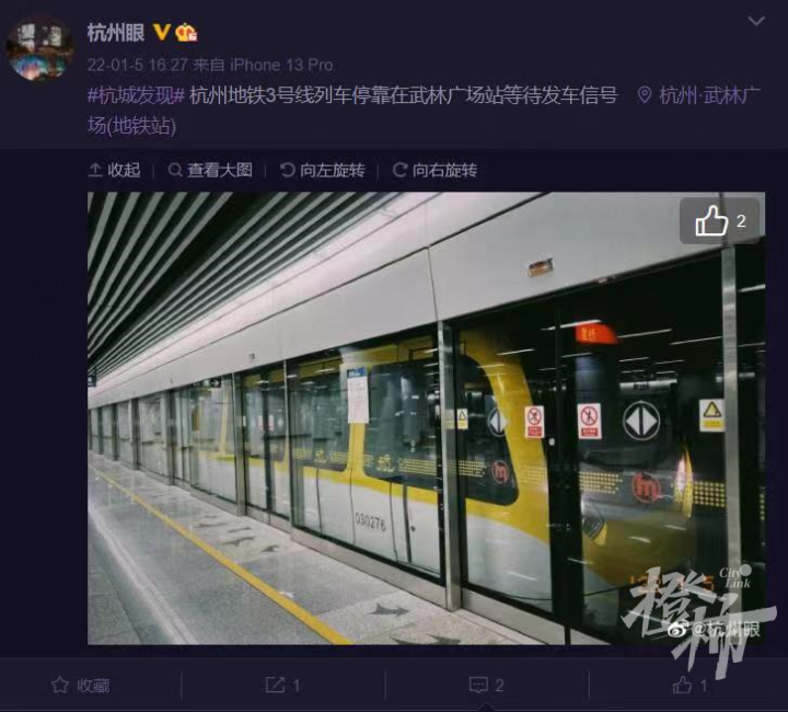 都市快报讯 近日,有不少网友在杭州市中心的武林广场地铁站,看到了地铁3号线列车,正在轨道上奔跑。