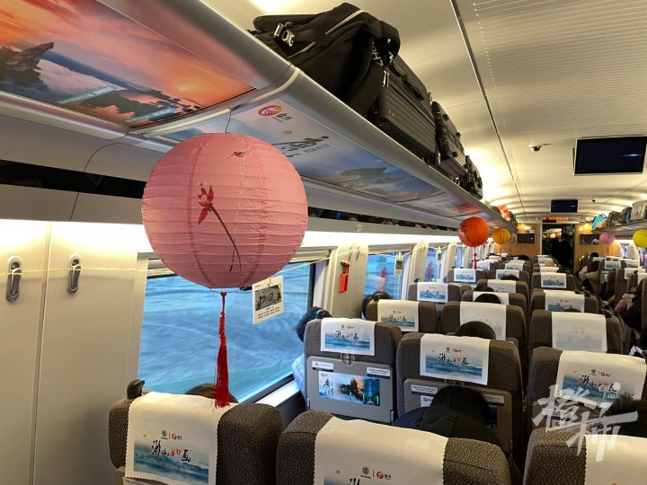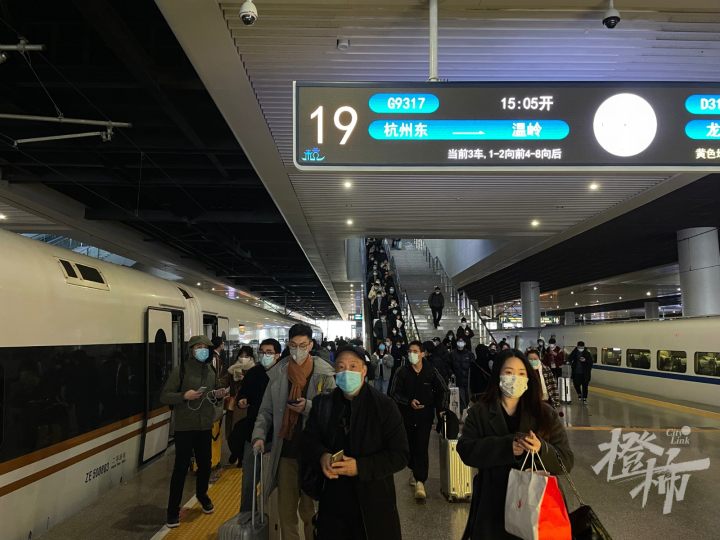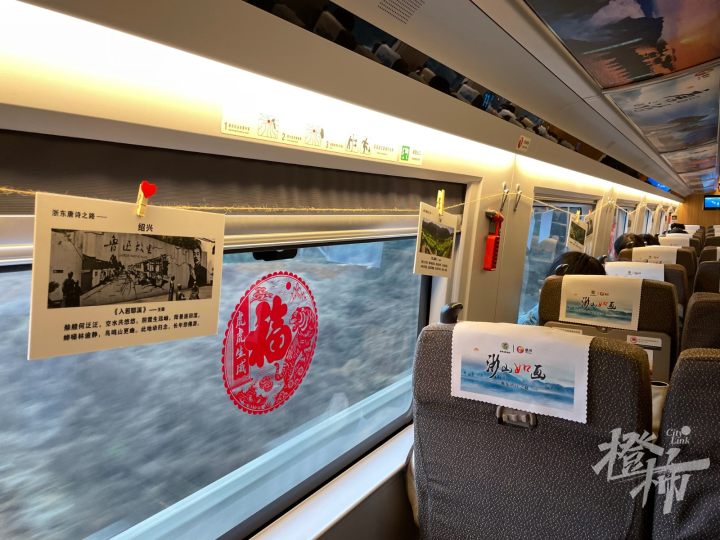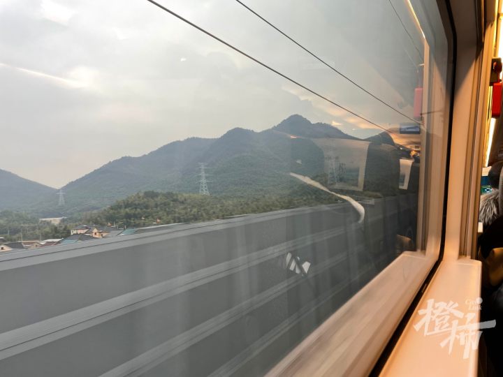 下午3点刚过,列车从杭州东站驶出后,跨过钱塘江向南行驶,车上的乘客都显得比较兴奋,有的拿着手机、相机在拍照,有的则是用家乡的方言谈论着,我们听了听,大多是绍兴、台州地区的口音。