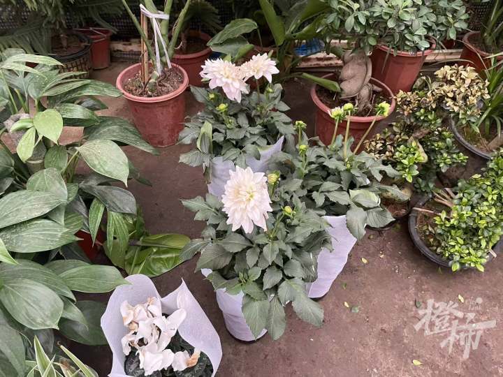 眼下,年还没过完,市场里能找到很多年宵花的影子:蝴蝶兰、君子兰、发财树、红果果等。