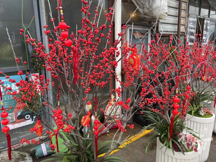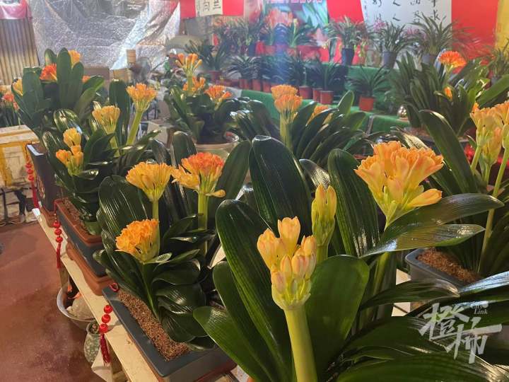 眼下,年还没过完,市场里能找到很多年宵花的影子:蝴蝶兰、君子兰、发财树、红果果等。