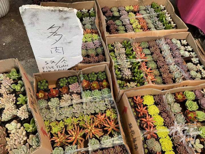 跟吴山花鸟市场、凤起花鸟城不同,这里主营年宵花及室内观叶植物、盆景、多浆植物,以及杭州生产的草花等批发业务。换句话说,就是多为盆栽盆景。