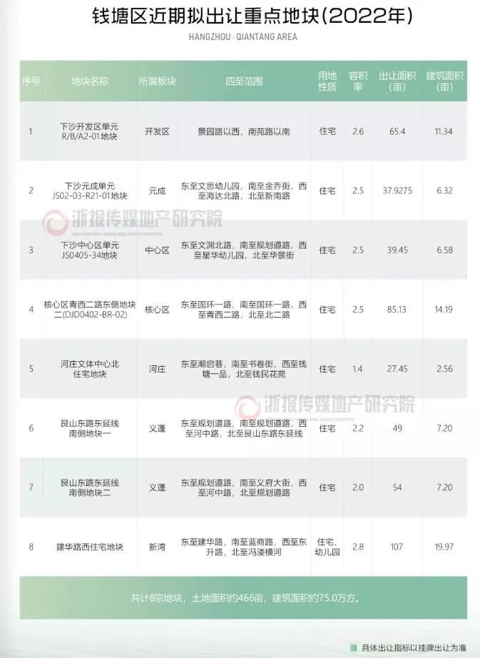 日前,钱塘区发布了《钱塘区2022年近期拟出让经营性用地地块图册》,将率先挂牌出让8宗优质地块。