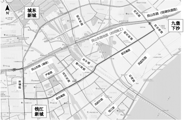 那么,施工期间如何绕行呢?开车的市民,可以选择走钱塘快速路、同协路、昙花庵路、新塘路等周边道路绕行。非机动车、行人可以在施工区域预留通道内通行。