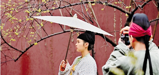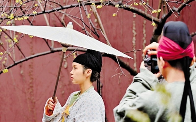 2月13日,游客来到杭州钱王祠观赏蜡梅和梅花。近日,杭州阴雨连绵、气温偏低,多个赏梅景点的梅花开花率较低。而位于西湖边的钱王祠内蜡梅和梅花虽然数量较少,但红墙衬托下,别致的韵味在网络社交媒体不胫而走,成了新晋“网红”打卡点。