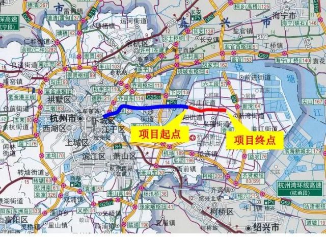 建成后,将贯通钱塘区、联系杭州主城区,对改善钱塘江南岸道路交通状况具有重要意义。