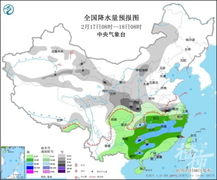 中东部地区将再迎大范围雨雪天气过程,西北地区中东部、华北中西部、黄淮等地有小到中雪或雨夹雪,甘肃南部、陕西南部、安徽中部大雪,局地暴雪;江南、华南等地有中雨或大雨。