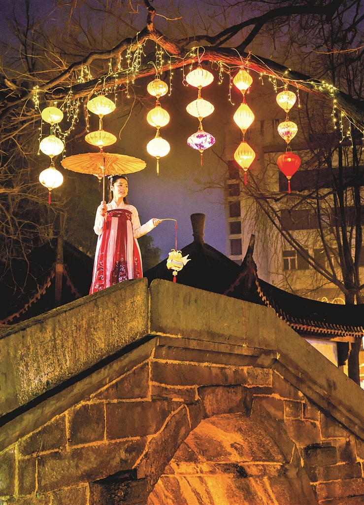 2月15日,元宵节。傍晚6点,暮色四合,城河两岸的灯光渐次亮起。赏灯的人们从各处赶来,共赴一场“寻梦城河”的主题灯会。在光影与历史的交汇中,人们仿佛回到了旧日时光,再次感受到城河老街的诗意文化。