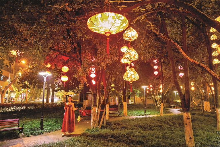 家住城河边的何先生感叹颇多,因为阳台就对着城河,他不出家门就能看到一排排整整齐齐的红灯笼,看着楼下变幻的灯景和赏灯的人群,他忍不住拍下美景发朋友圈:“城河的夜晚第一次这么热闹。”言语中,是欣喜,更是期待。
