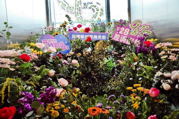 2022年2月18日,龙湖杭州吾角天街正式进入开业倒计时百天,以“WU不定义”为主题,在情人节里围绕“不被定义的Z世代”打造出的爱不设限电梯花厅,引来无数人拍照打卡。