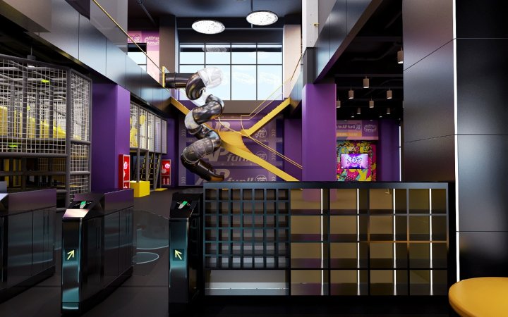 5.5万方的吾角天街场内空间将“潮”的灵动精髓沿用至内部空间,并互相呼应形成“潮水”的线性波动。而入口处的星光熠熠与波光粼粼的灯带,将现代艺术与自然巧妙融合,Z世代氛围感已扑面而来。从B2-6F主题楼层打造新意的空间体验场景,为各个小众圈层、独立文化的爱好者和参与者提供了更多的潮流文化活动空间与圈层聚集场所。