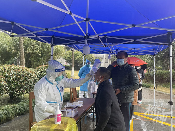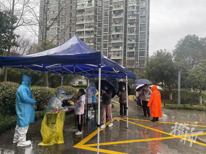 今天早上,滨江区浦沿街道金盛曼城小区开展第三轮核酸采样,第二轮核酸检测结果均为阴性。