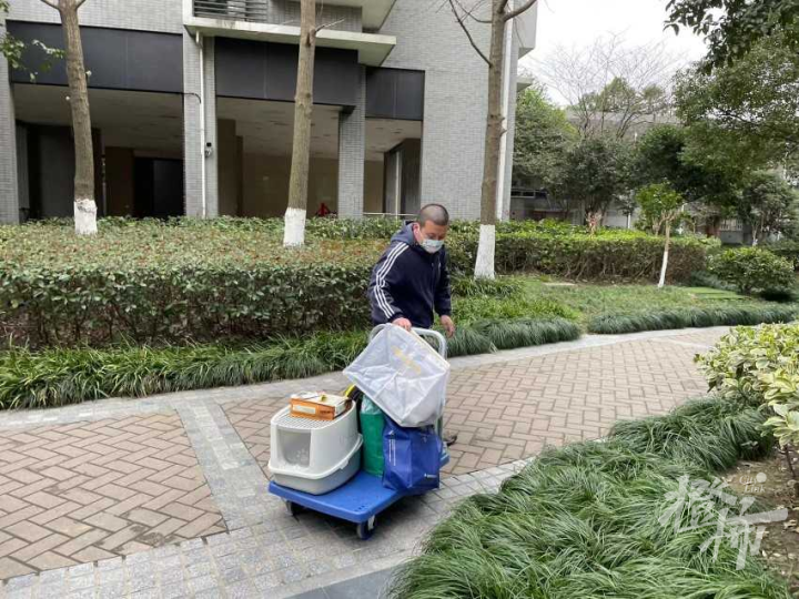 昨天上午,明德社区工作人员给金盛曼城小区重点隔离人员的小猫咪找到了“新家”。