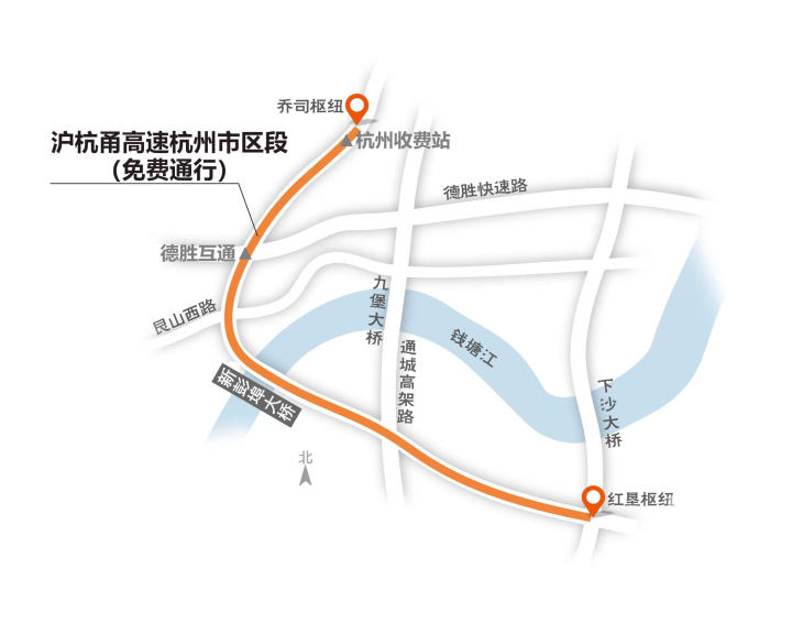 剩下的一段是S2高速公路红垦段,预计7月底前具备通车条件,整个沪杭甬高速杭州市区段改建工程将在这时整体亮相,成为杭州市内的又一条南北向跨江城市快速路,供市民免费开车通行。