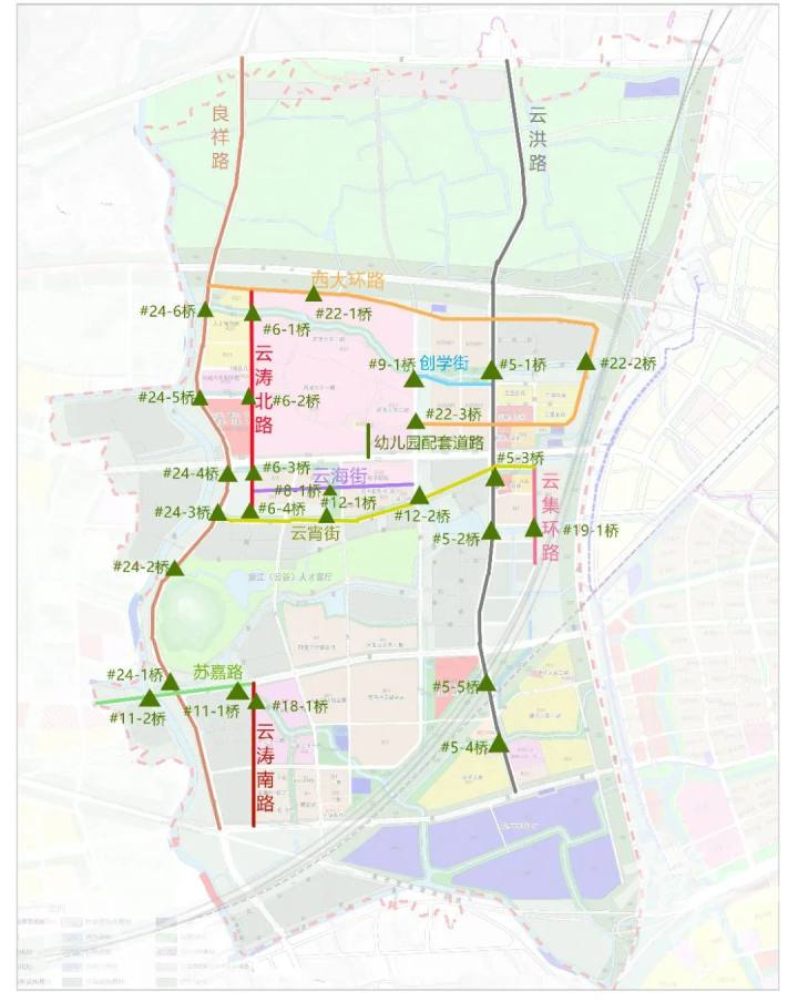 道路规模:道路呈半环形,道路西起云涛北路,东至云创路,3915m*14-20m,桥梁3座。