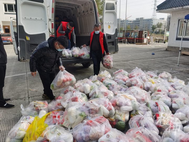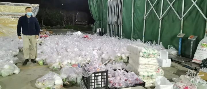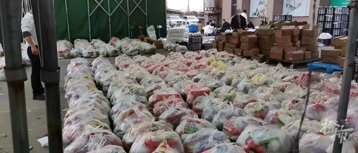 “我们一共准备了9种物资,包括蔬菜、肉类和水果。”广瑞食品的李女士说,从昨晚12点接到街道通知,他们就组织员工开始连夜分拣、打包、装车,到早晨6点半,正式开始派送。