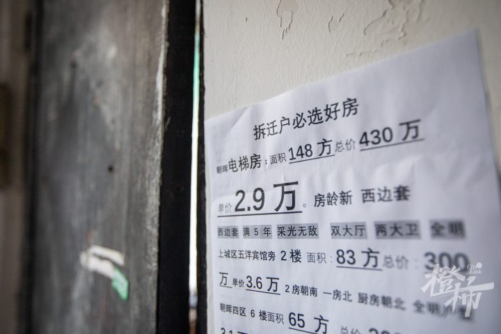 小北门居民楼里到处张贴着房产广告。