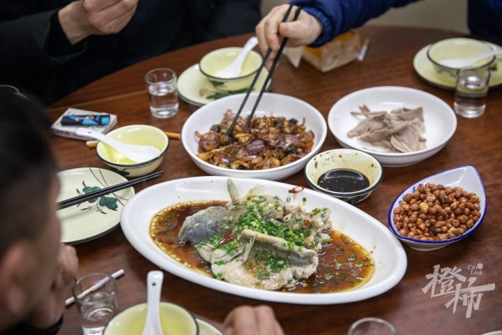 “红烧鲫鱼、香干肉丝必点的,要么再来个韭芽炒蛋,三四个菜,一瓶酒喝掉。他在近江那边的嘛,七点半吃好走,路上半个钟头,算好的。”汪建国说。
