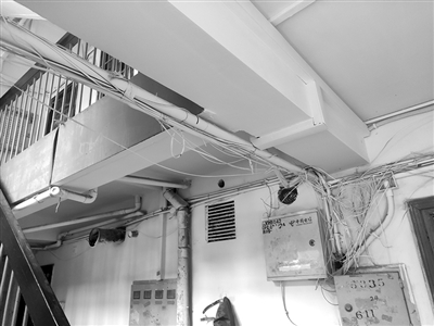 来到戴先生家的单元楼,记者看到楼道内两侧墙壁上也有不少线路,有的就挂在墙上,有的则盘成一个圆形。